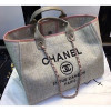 • 샤넬 도빌 캔버스 토트 미디엄 쇼핑 백 베이지 핑크