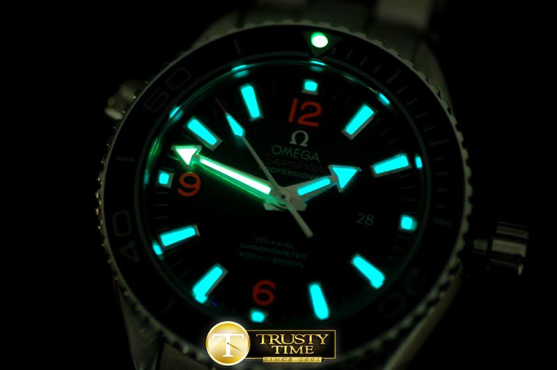 | 다이얼 컬러 | Black Dial Embossed Orange Steel 6/9/12 Numeral Markers Correct Omega Logo - No Happy Feet |2 Colour Superlume Blue/Green Blue on Hour Markers and Hour Hand Green On Bezel and Min Hand As per Genuine for Easy Reading Against Bezel Minute Index during Diving |