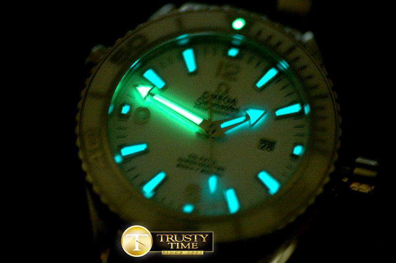 | 다이얼 컬러 | White Dial Embossed Steel 6/9/12 Numeral Markers Correct Omega Logo - No Happy Feet |2 Colour Superlume Blue/Green Blue on Hour Markers and Hour Hand Green On Bezel and Min Hand As per Genuine for Easy Reading Against Bezel Minute Index during Diving |
