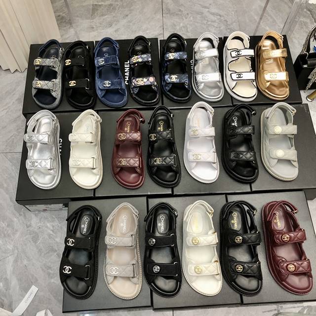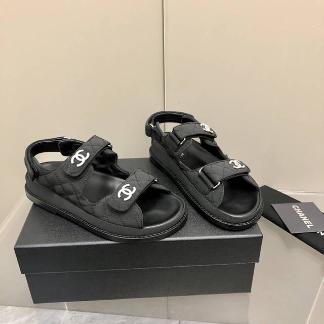 • 샤넬 CC로고 벨크로 여성 샌들