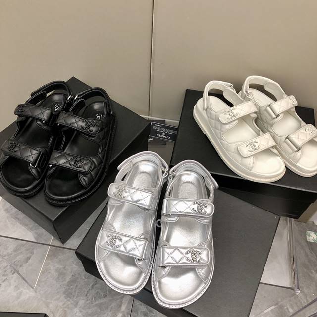 • 샤넬 CC로고 벨크로 여성 샌들