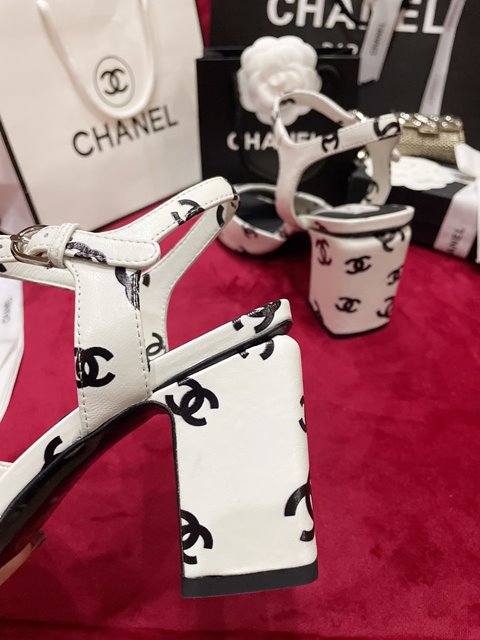 • 샤넬 CC 로고 프린티드 힐 샌들 8.5cm