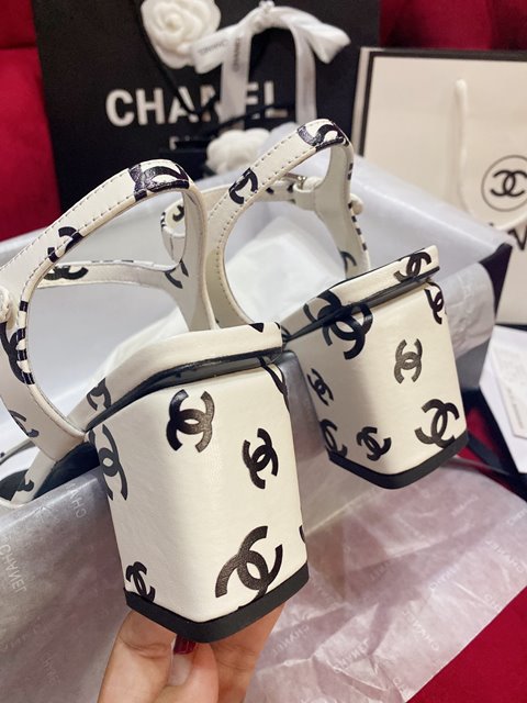 샤넬 CC 로고 프린티드 힐 샌들 6.5cm > 여성-샌들