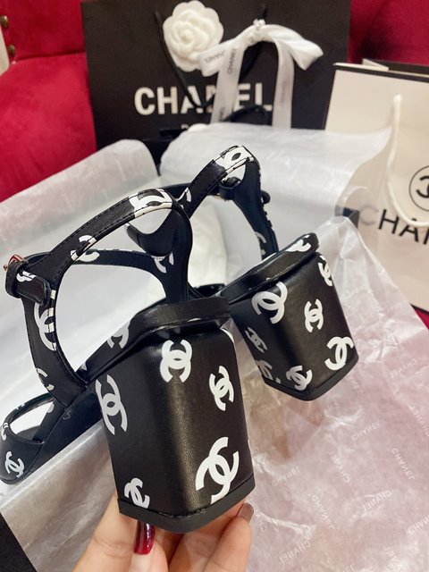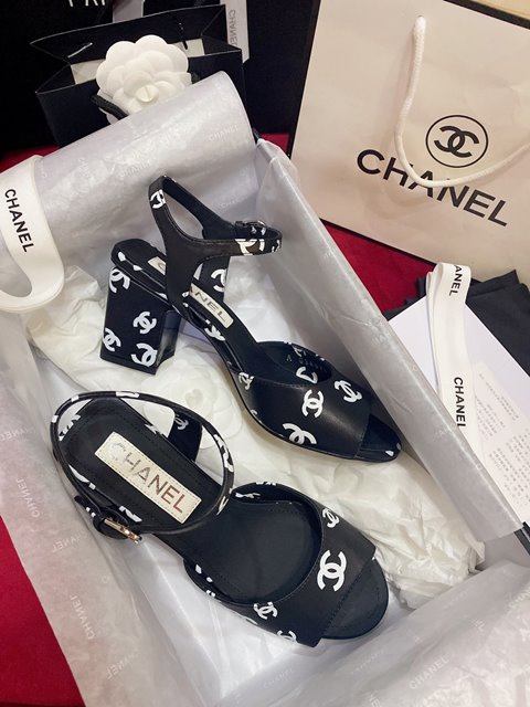 샤넬 CC 로고 프린티드 힐 샌들 6.5cm > 여성-샌들