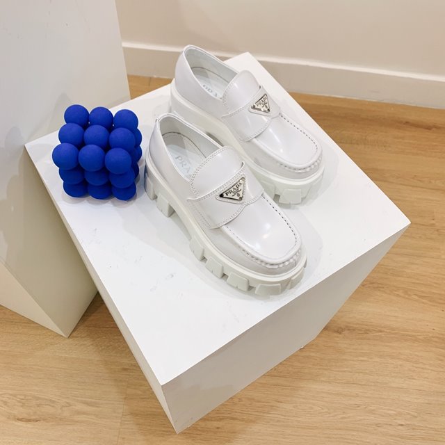 • 프라다 모놀리스 브러시드 가죽 로퍼