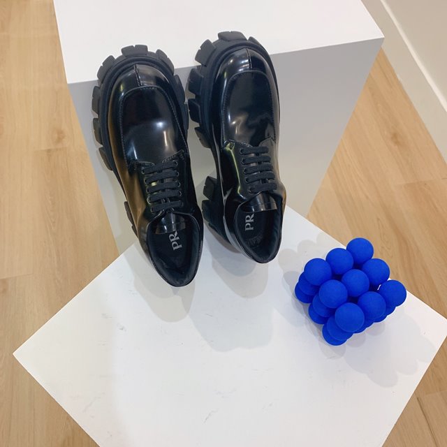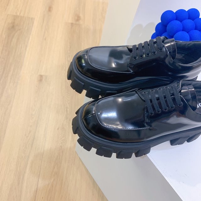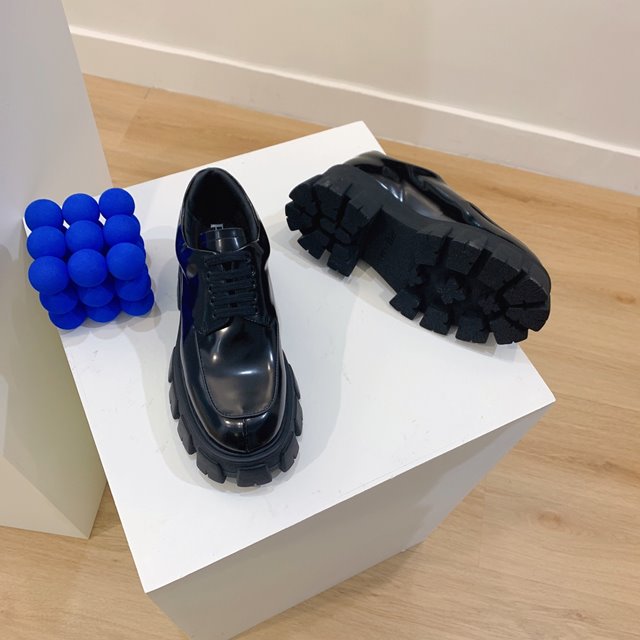 • 프라다 모놀리스 브러시드 가죽 레이스업 슈즈 1E708L