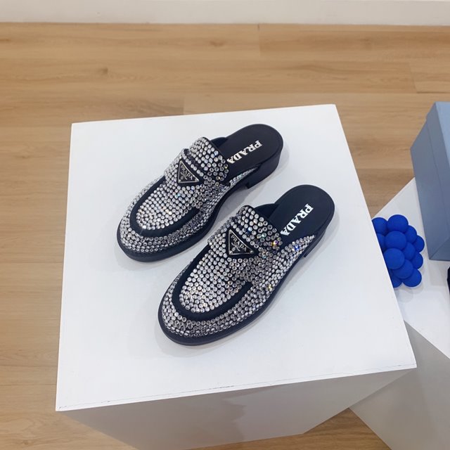 프라다 크리스털 새틴 뮬 1D754M > 여성-슈즈