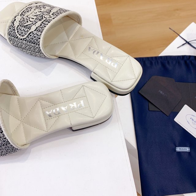 • 프라다 자수 장식 패브릭 슬라이드 슬리퍼 1XX612