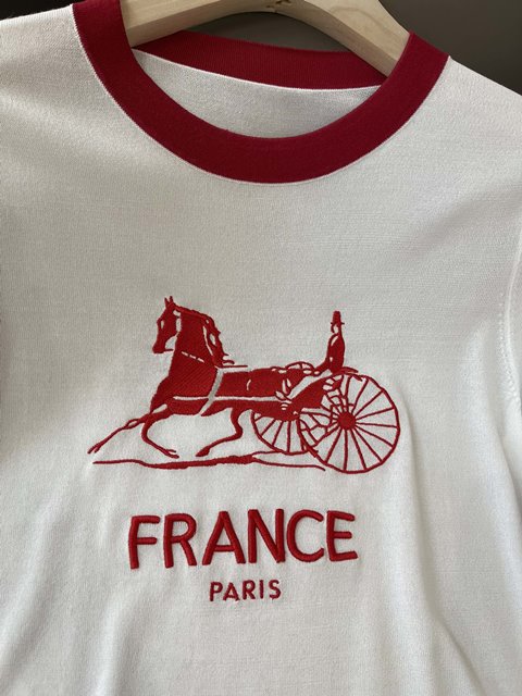 • 셀린느 마차로고 여성 반팔 니트 2칼라