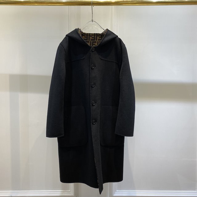 • 펜디 리버서블 울 캐시미어 혼방 남성 후드 트렌치 코트