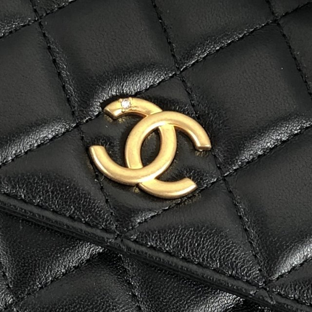• 샤넬 A98571 램스킨 판타지 라이트골드 메탈 진주 플랩 백 블랙