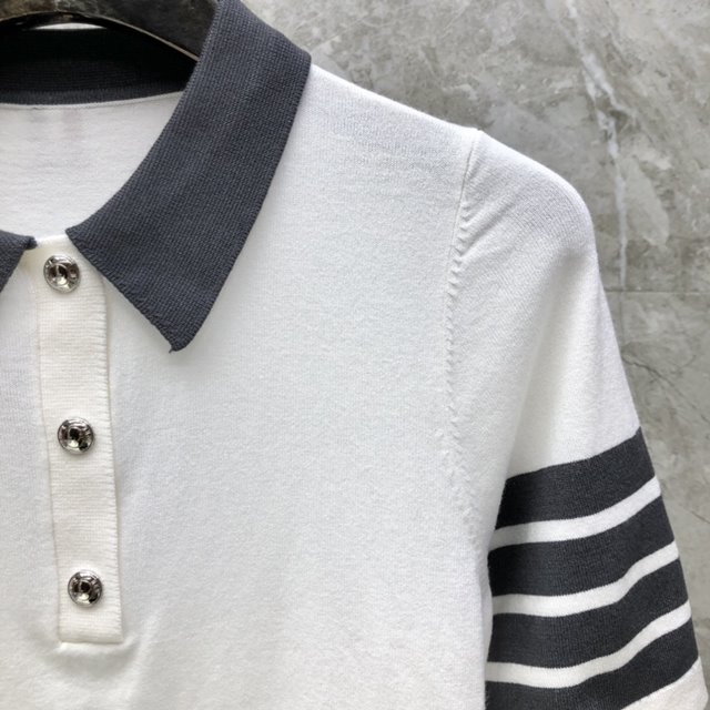 • 톰브라운 사선 여성 폴로 반팔 니트 2칼라