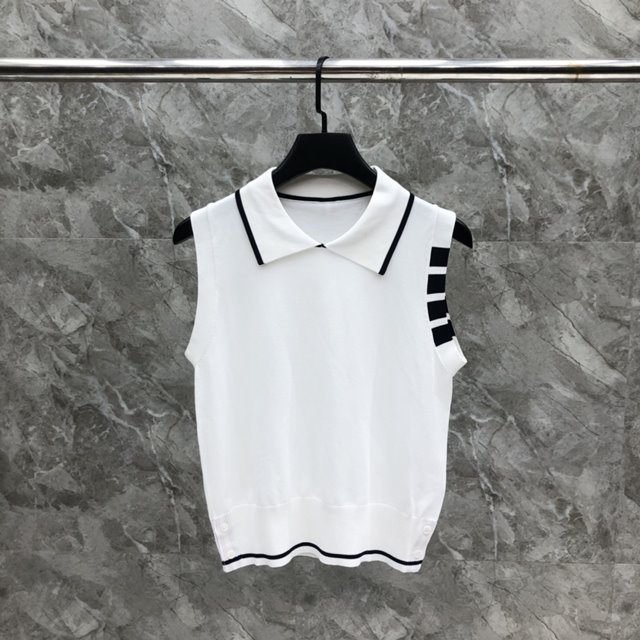 • 톰브라운 사선 민소매 여성 폴로 니트 2칼라