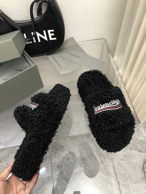 • 발렌시아가 퍼리 FURRY 슬라이드 여성 샌들 슬리퍼