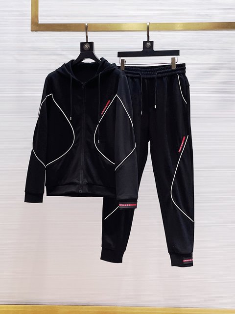 • 프라다 로고 트레이닝복 지퍼 후디 + 조거 팬츠 세트