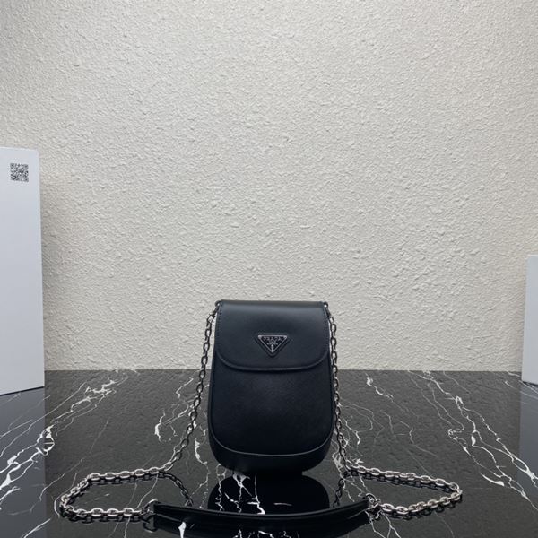 • 프라다 브러시드 레더 체인 플랩 미니백 블랙 1BH185