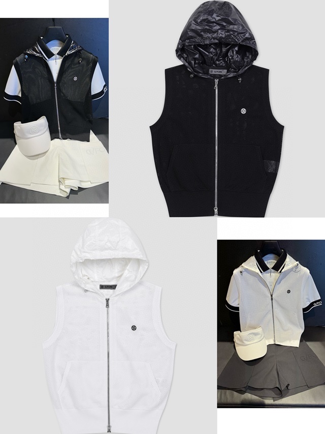 지포어 G/FORE 여성 후드 망사 베스트 지퍼 조끼 2칼라 > 골프의류