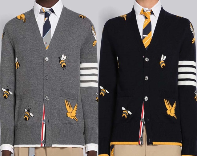 톰브라운 꿀벌 새 사선 브이넥 남여공용 가디건 2칼라 > 톰브라운