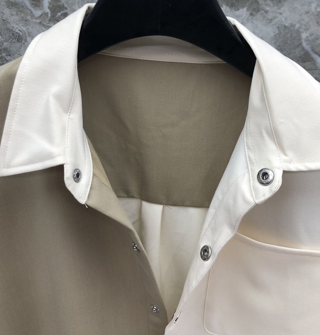 • 톰브라운 사선 카키 배색 남여공용 셔츠 재킷