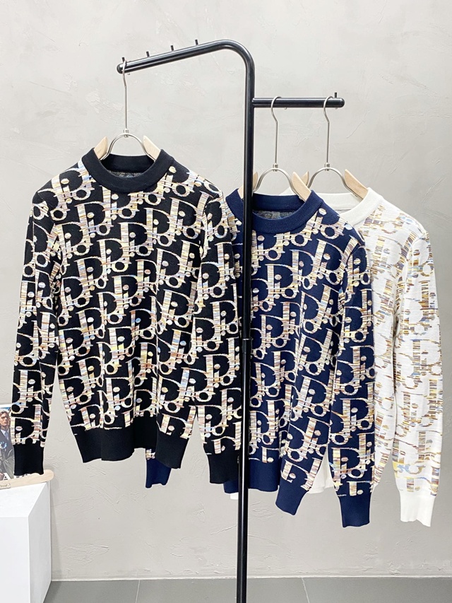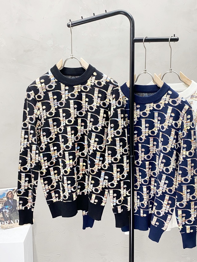 • 디올 오블리크 크루넥 남여공용 니트 스웨터 3칼라