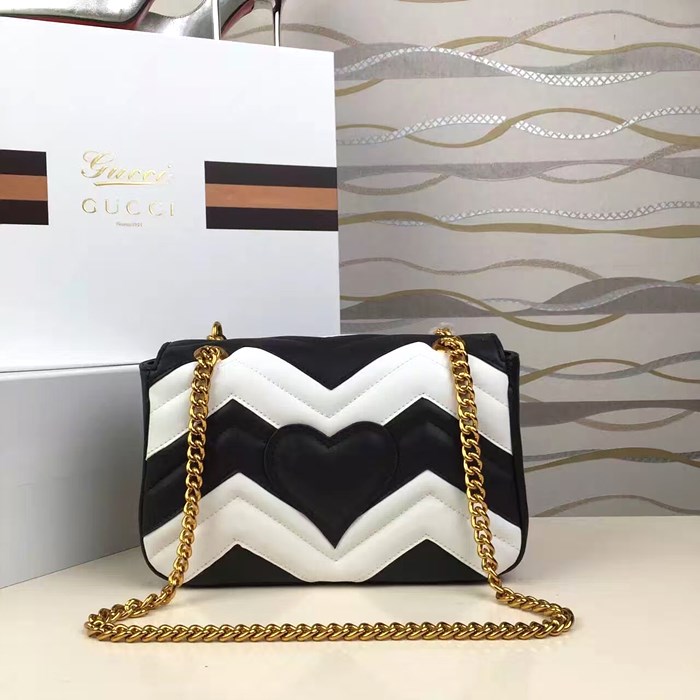 • 구찌 마몬트 마틀라세 쉐브론 미니 체인 숄더백 426744  -화이트