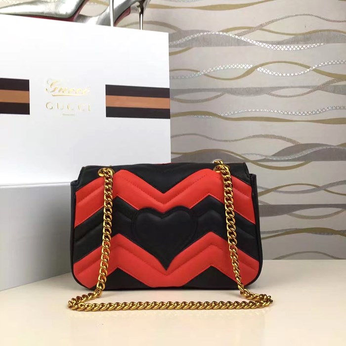 • 구찌 마몬트 마틀라세 쉐브론 미니 체인 숄더백 426744  -레드
