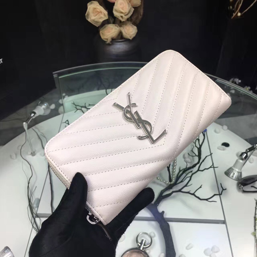 이브생로랑 지퍼어라운드 여성장지갑 -크림/은장 > 여성지갑