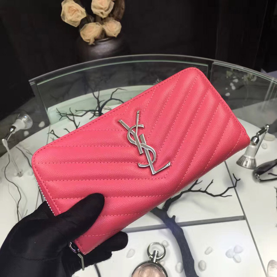 • 이브생로랑 지퍼어라운드 여성장지갑 -핑크/은장