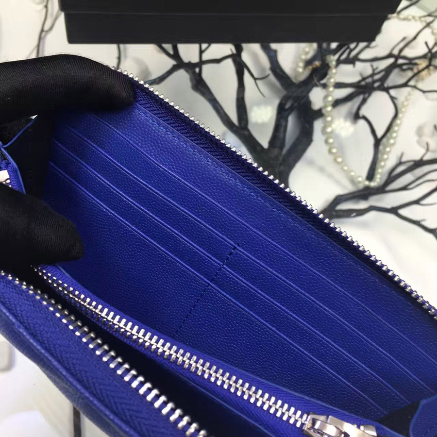 • 이브생로랑 지퍼어라운드 여성장지갑  -블루/은장