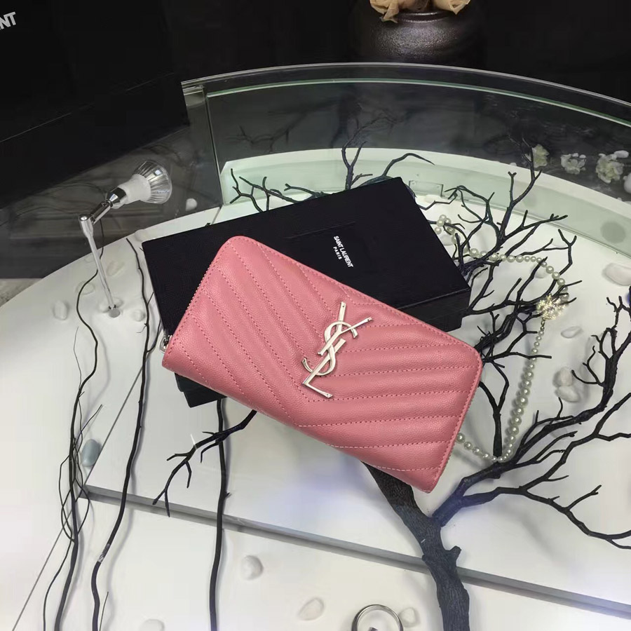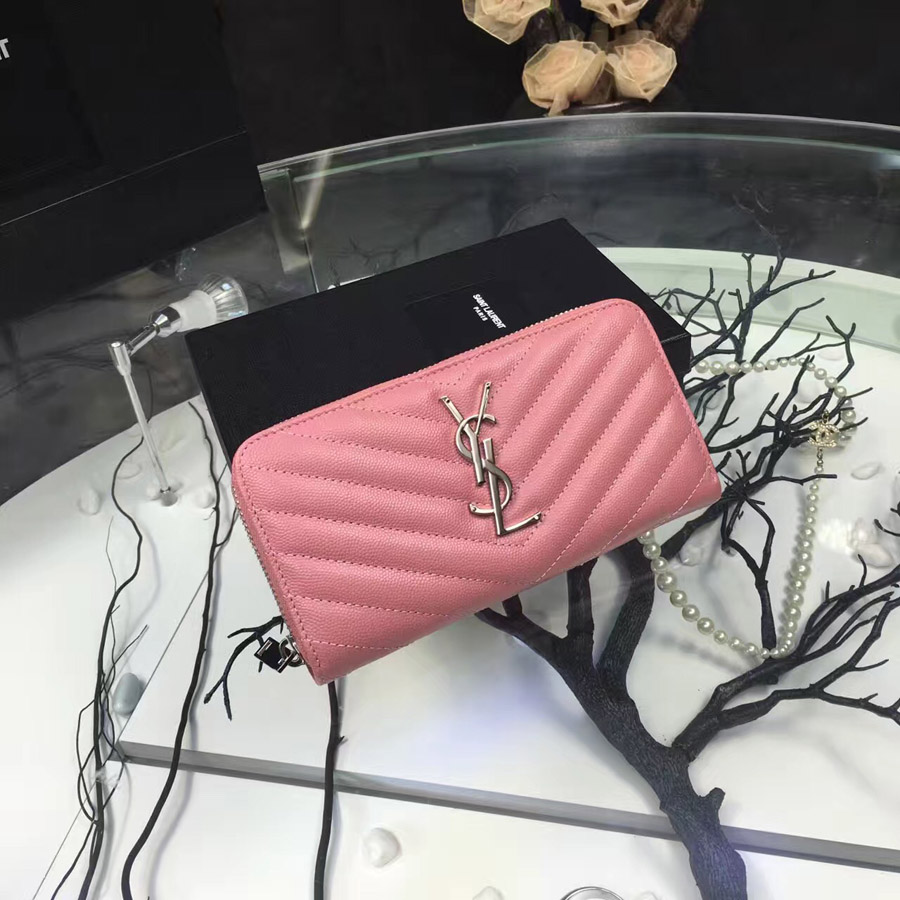 • 이브생로랑 지퍼어라운드 여성장지갑 -핑크/은장