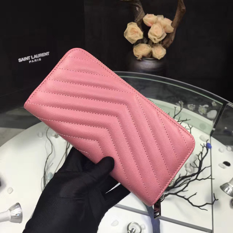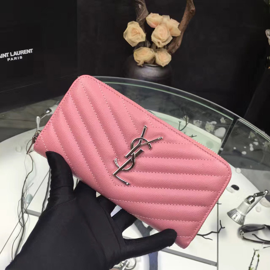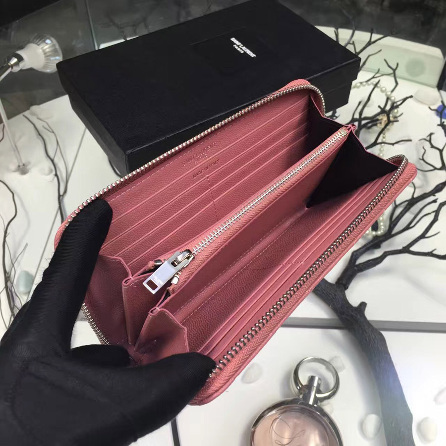 • 이브생로랑 지퍼어라운드 여성장지갑  -핑크/은장