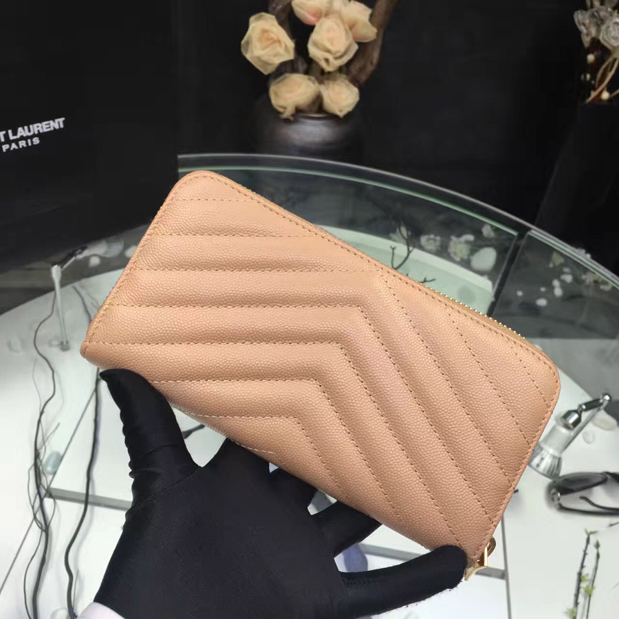 • 이브생로랑 지퍼어라운드 여성장지갑  -베이비핑크/금장