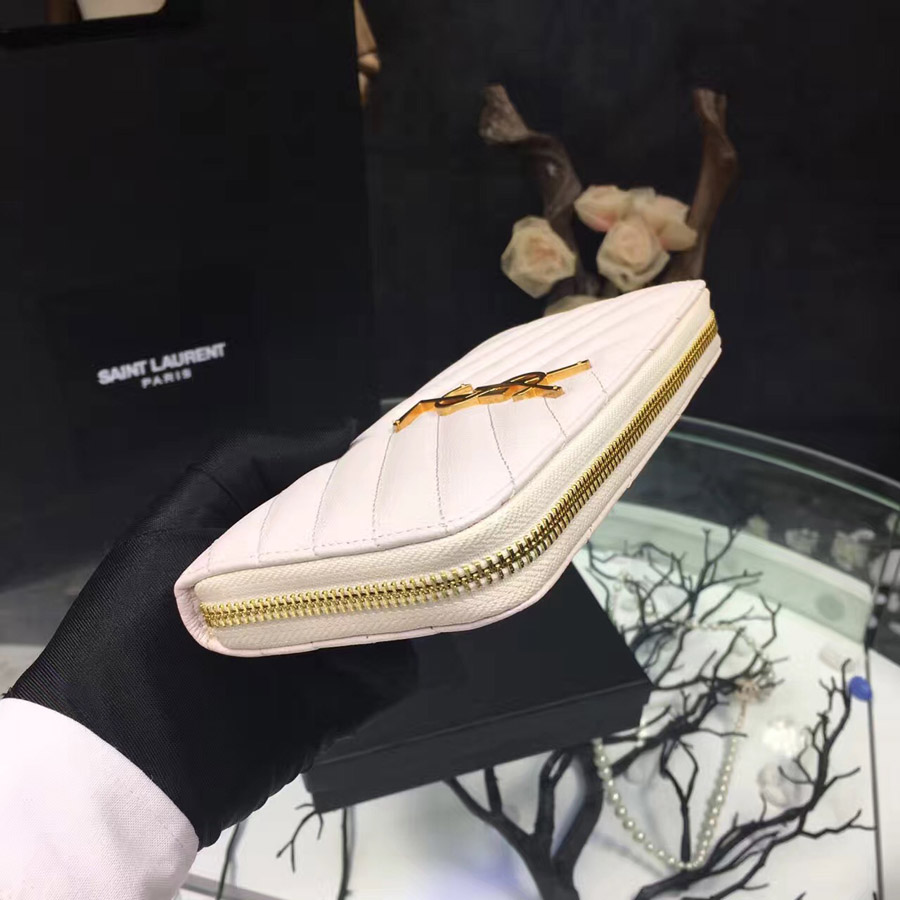 이브생로랑 지퍼어라운드 여성장지갑 -화이트/금장 > 여성지갑