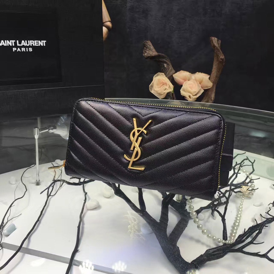 • 이브생로랑 지퍼어라운드 여성장지갑  -블랙/금장