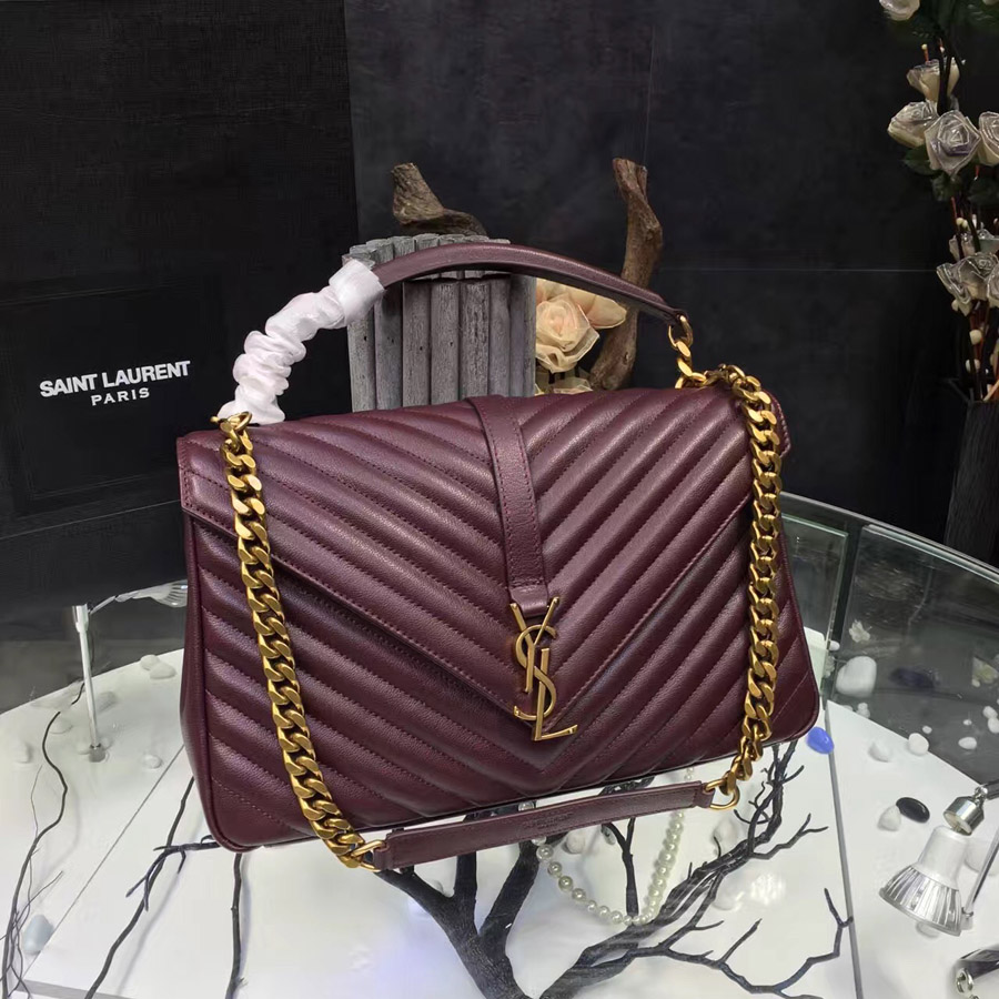 이브생로랑 마틀라세 클래식 컬리지 사첼백 -라지/버건디/고트스킨 > 가방