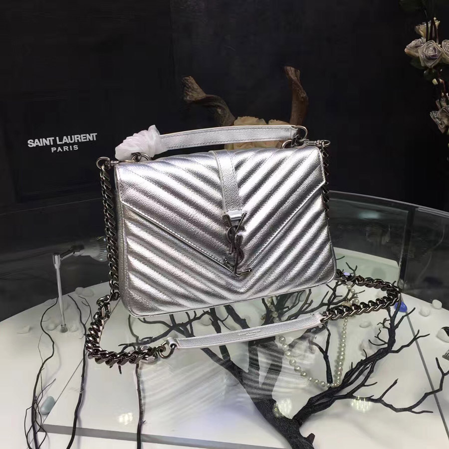 이브생로랑 마틀라세 클래식 컬리지 사첼백 -스몰/실버/고트스킨 > 가방