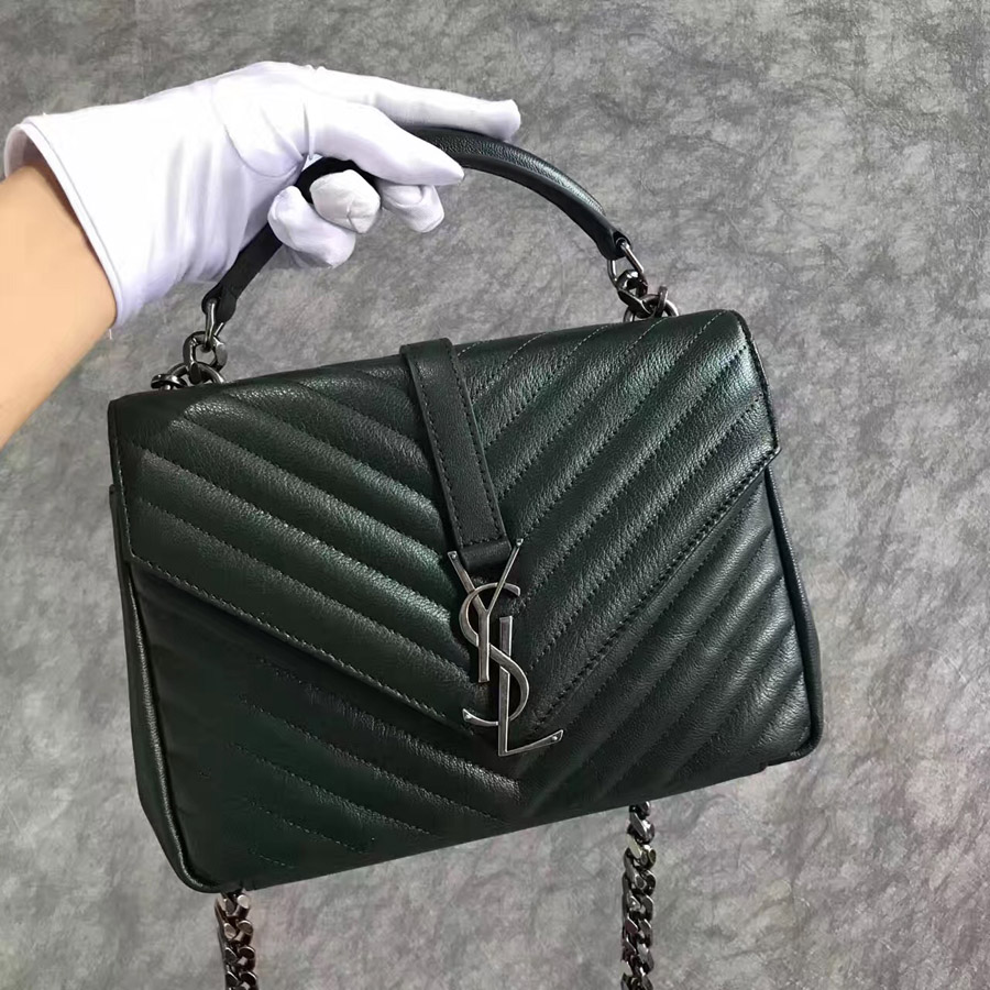 • 이브생로랑 마틀라세 클래식 컬리지 사첼백 -스몰/카키/은장