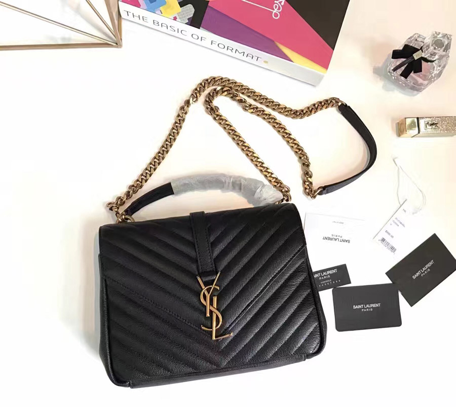 • 이브생로랑 마틀라세 클래식 컬리지 사첼백  -스몰/블랙/금장