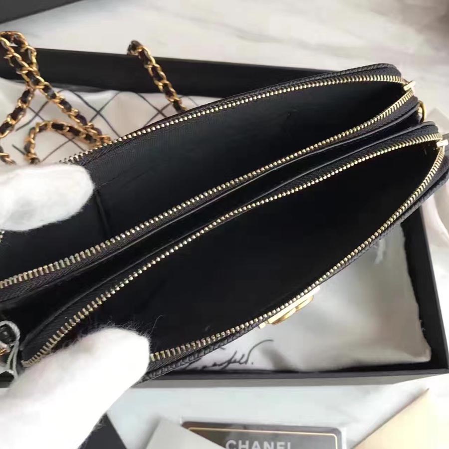• 샤넬 프린트  램스킨 월릿 온 체인 WOC 백 블랙