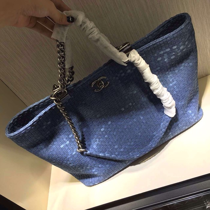 • 샤넬 로고 데님 CC프린트 도빌 토트백 A98095 -데님