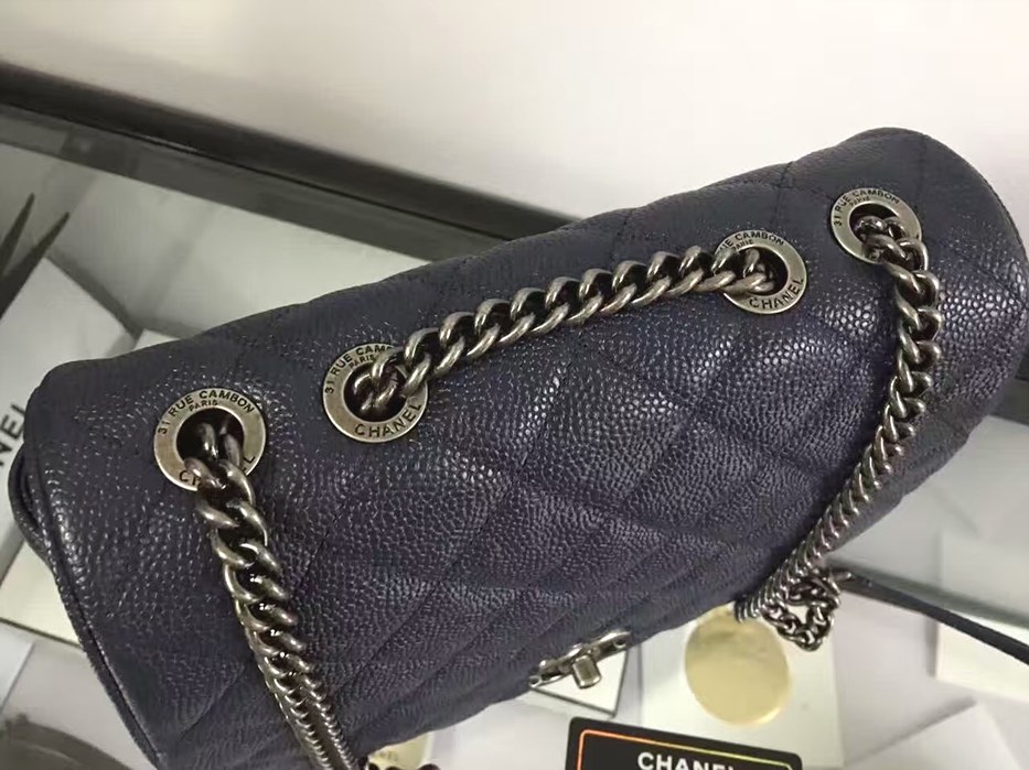 • 샤넬 클래식 매딜리온 숄더백 25  -카프스킨/블루/금장