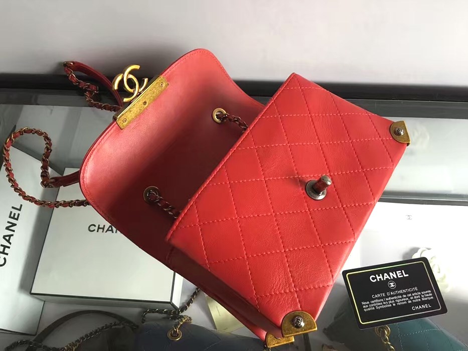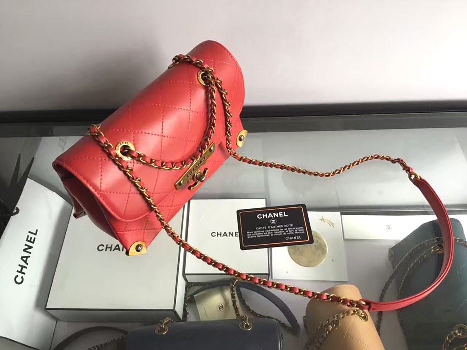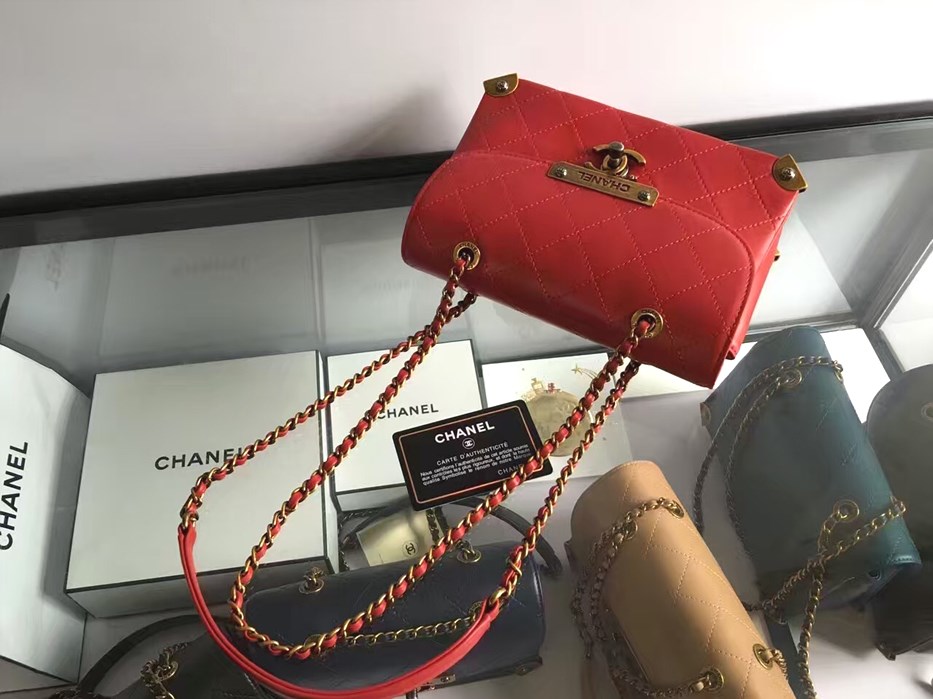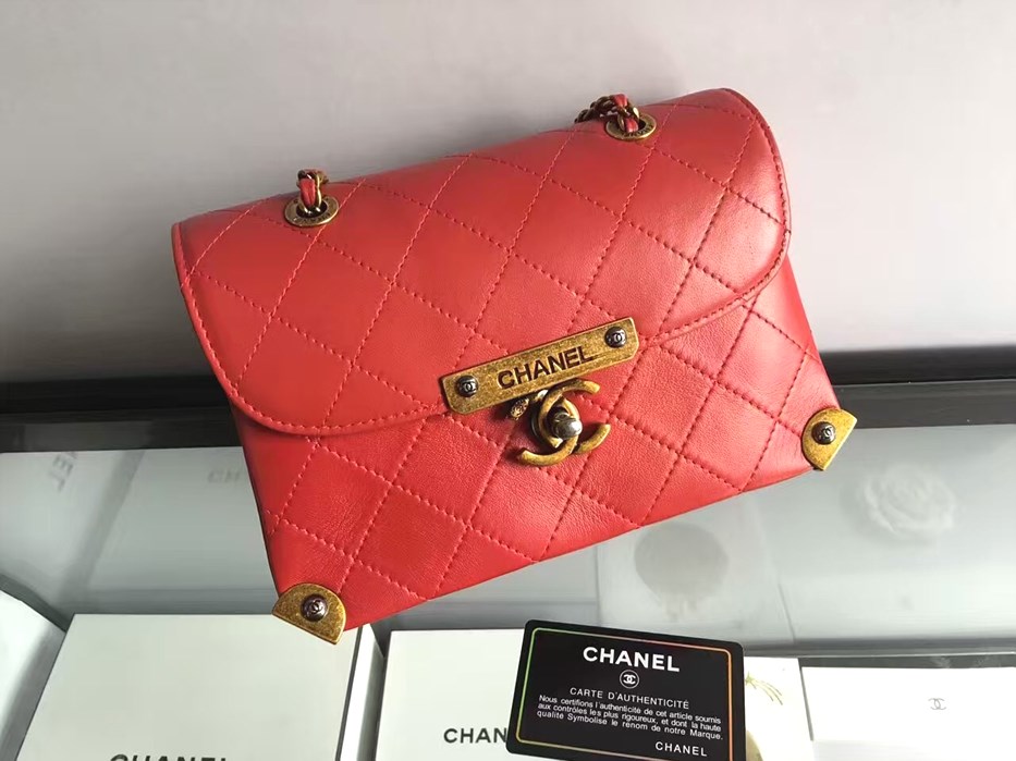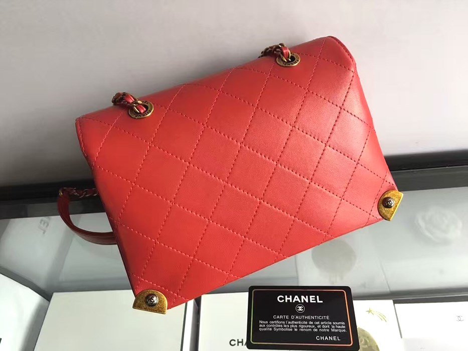 • 샤넬 CC 빅로고 시그니쳐 퀄팅 체인 WOC A980045  -레드/램스킨