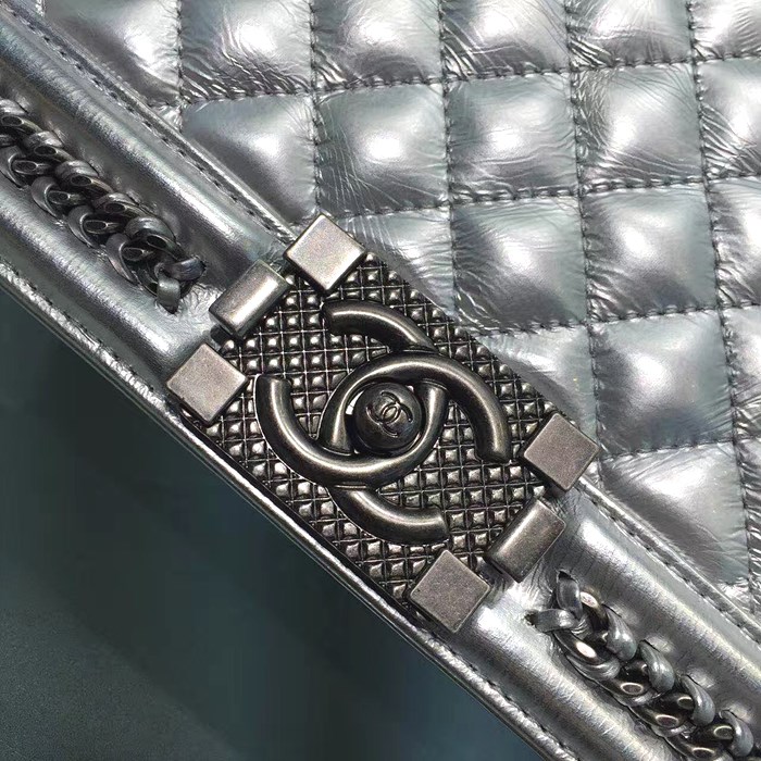 • 샤넬 탑핸들 보이백25  -은장/카프스킨/실버