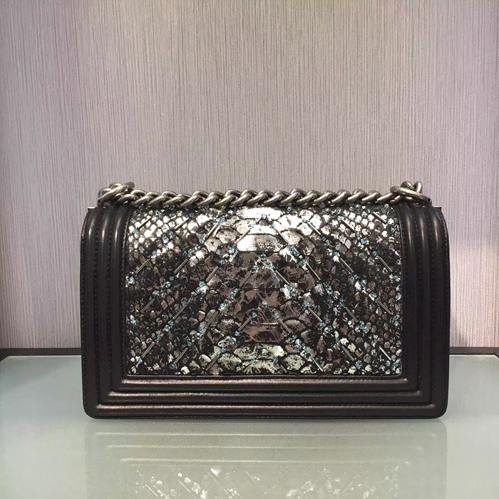 샤넬 뱀피 보이백25 -블랙/뱀피/은장