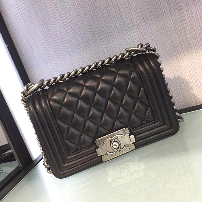 • 샤넬 스티치 보이백25-은장/블랙/램스킨