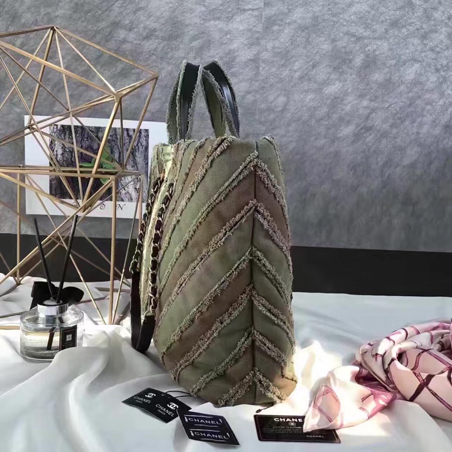 • 샤넬 캔버스 패치워크 라지 토트백 A93715  -캔버스/카키