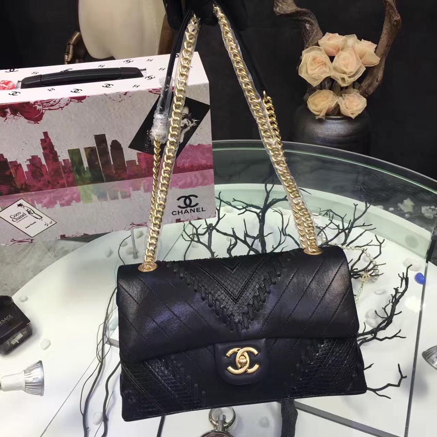 • 샤넬 캔버스 클래식 플랩백  -뱀피/블랙/금장