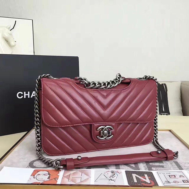 • 샤넬 체인 숄더백  -램스킨/버건디