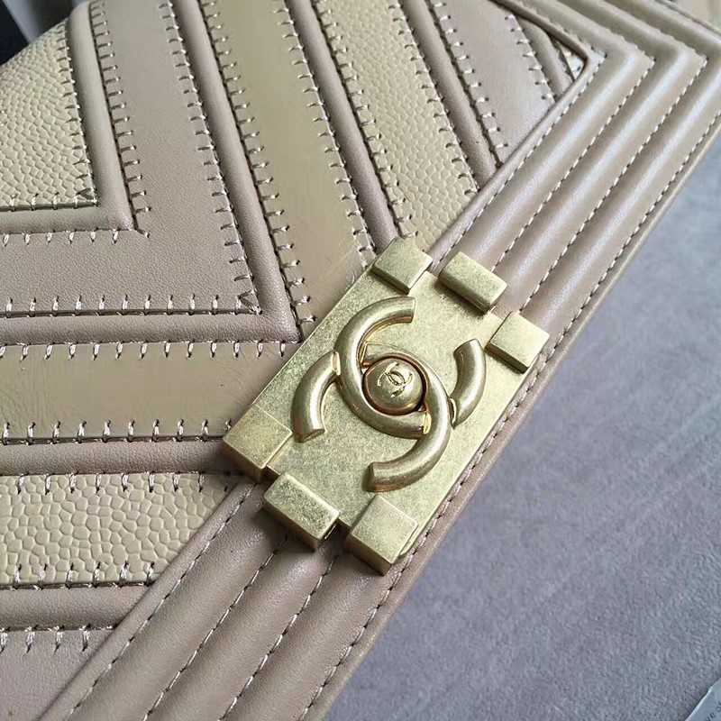 샤넬 스티치 쉐브론 보이 플랩백 25 -카프스킨/베이지/금장 > 가방