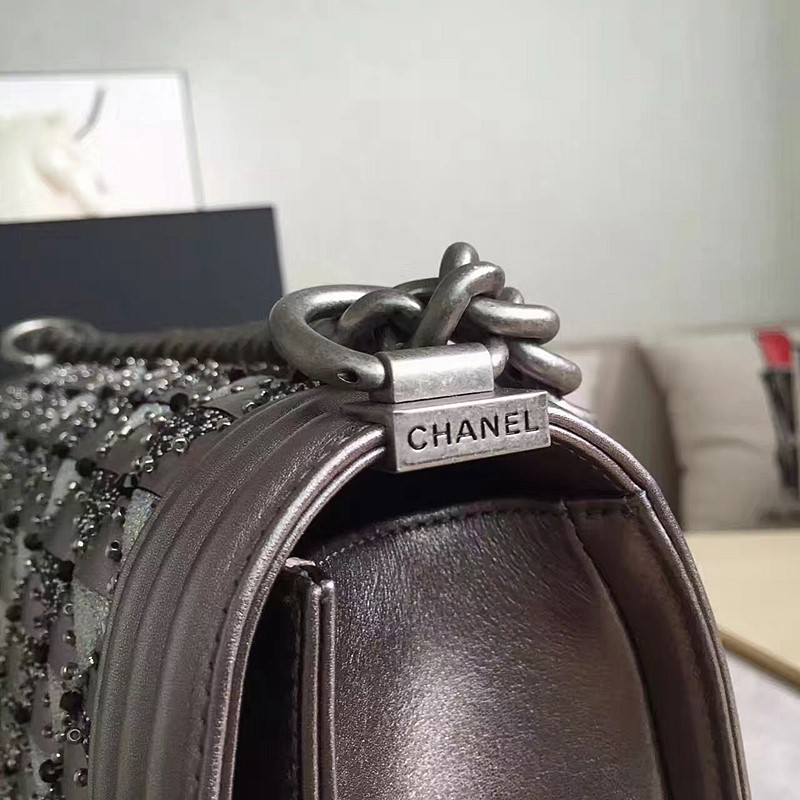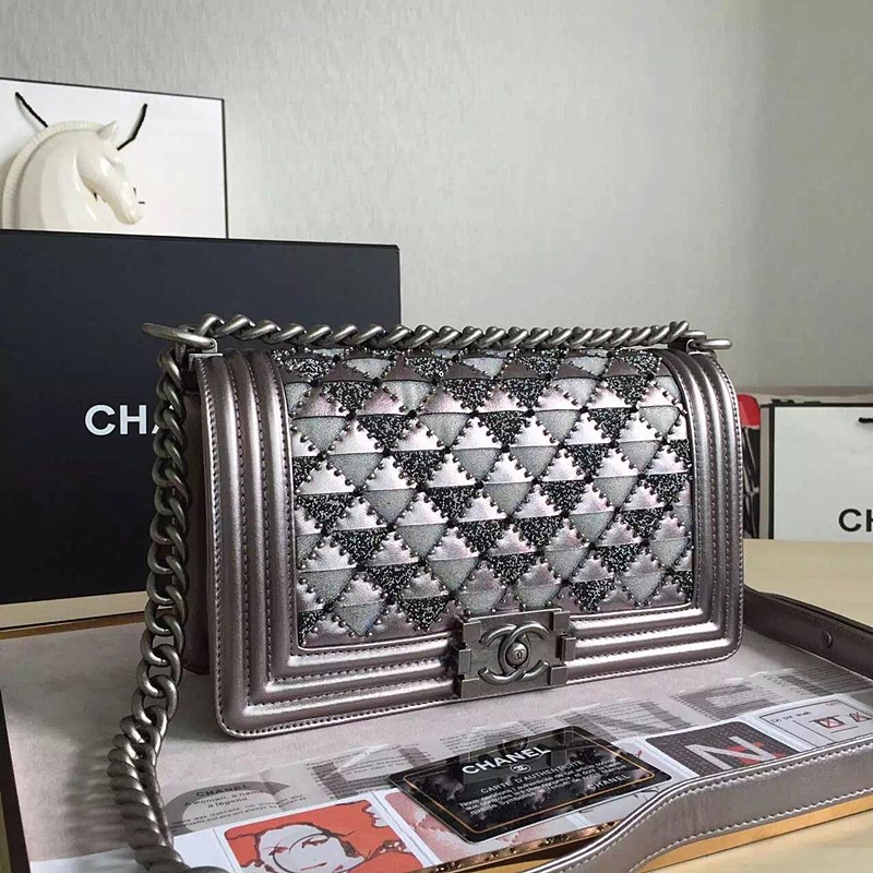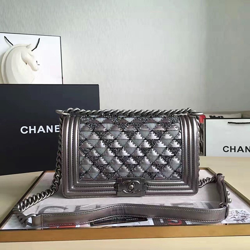 샤넬 스티치 쉐브론 보이 플랩백 25 -카프스킨/실버/은장 > 가방
